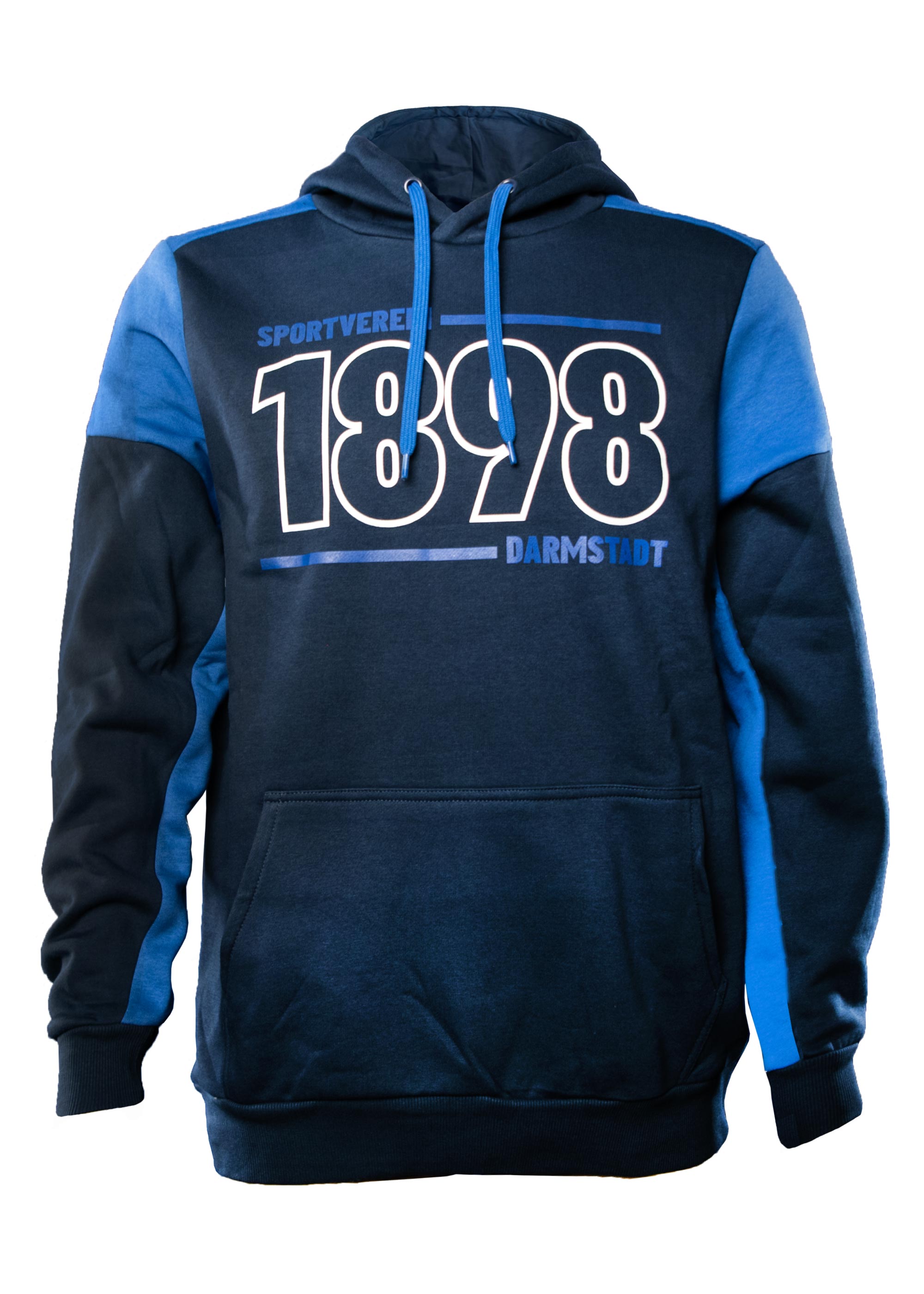 Lässiger Hoodie in verschiedenen Blautönen. Auf der Brust prangt eine weiß gerahmte "1898".