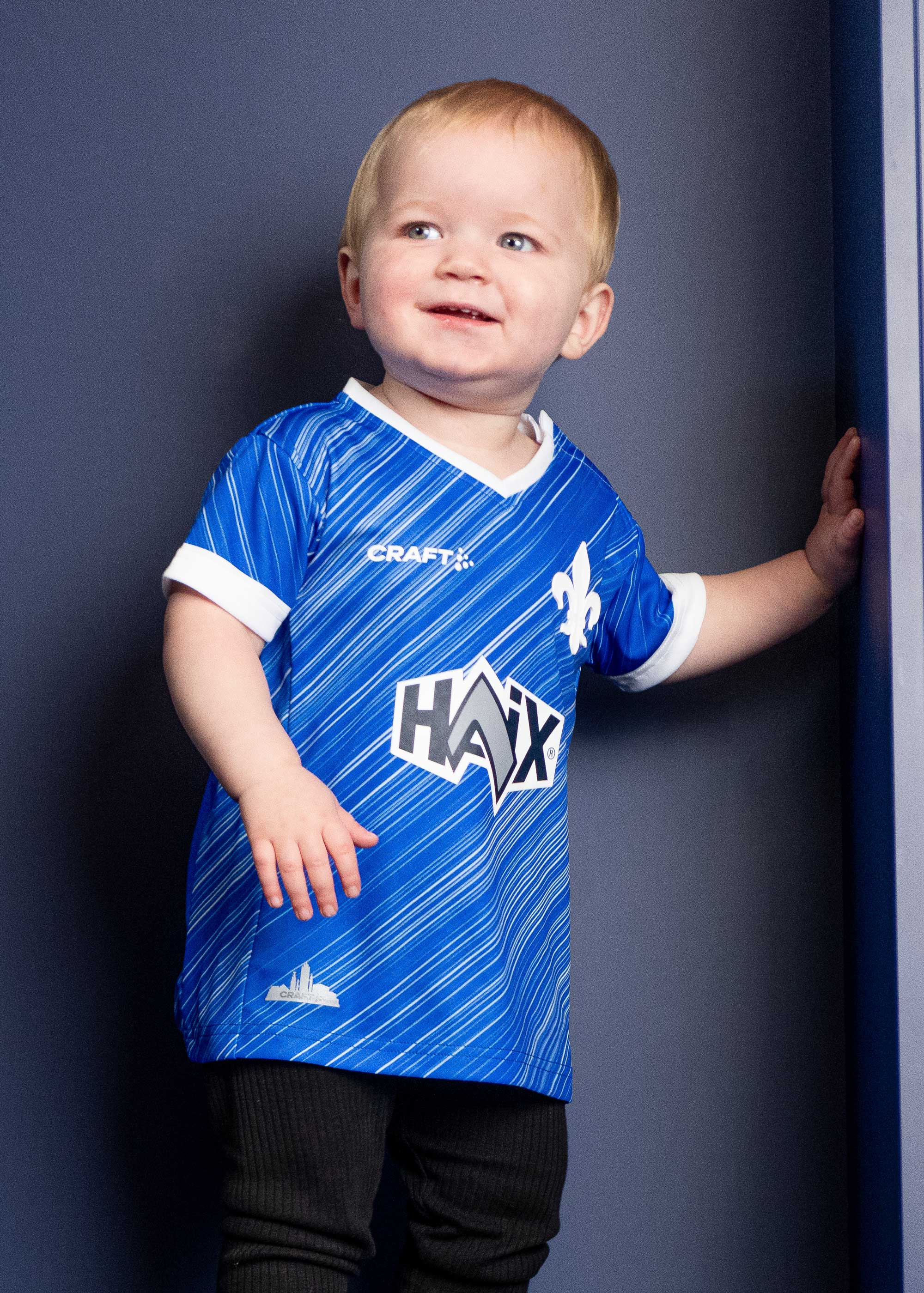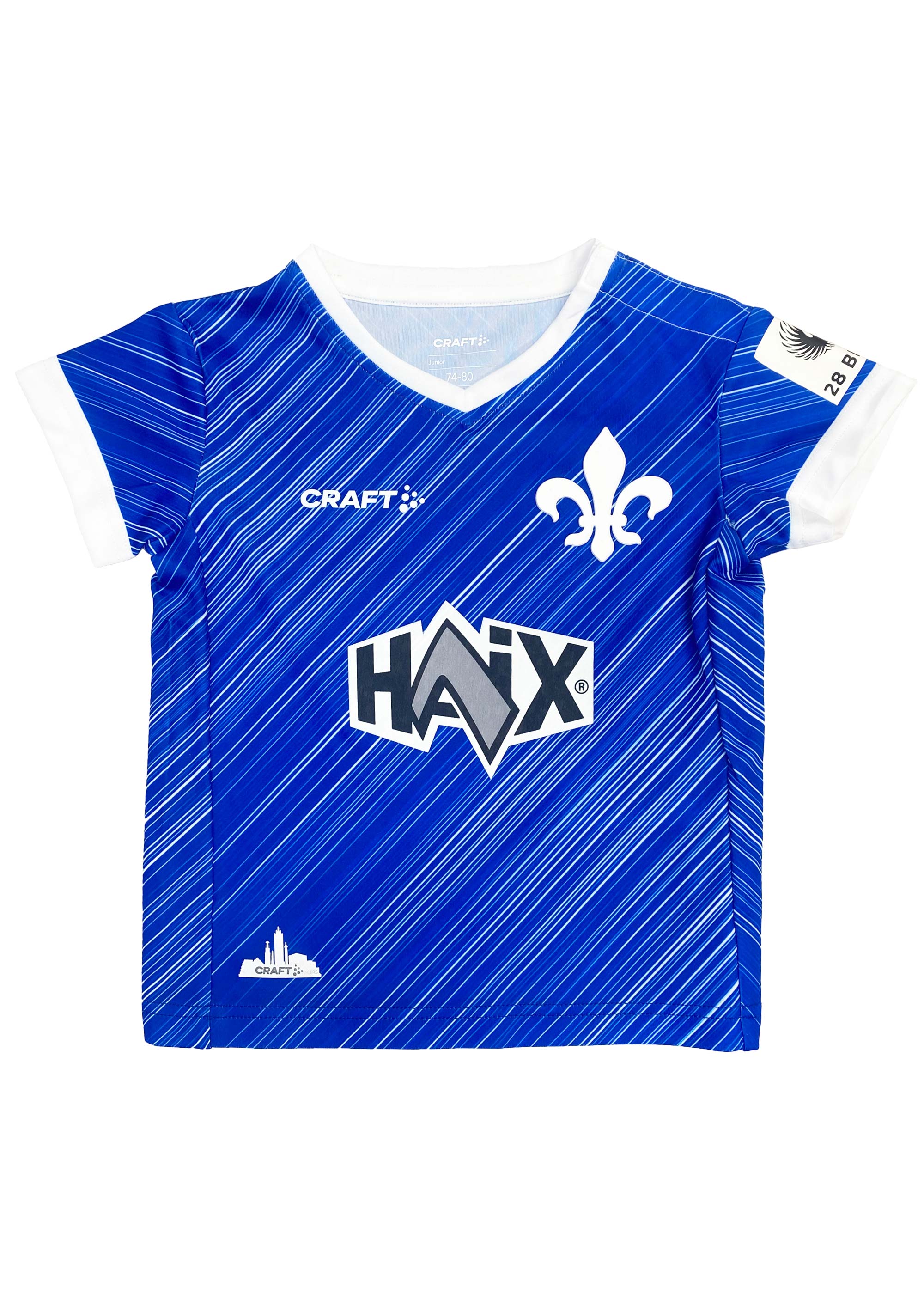 Das Heimtrikot unserer Lilien ist ab sofort auch für die kleinsten Fans verfügbar. Damit das An- und Ausziehen leichter fällt, wurde in den Schulterbereich eine Knopfleiste zur Vergrößerung des Halsausschnitts eingearbeitet.