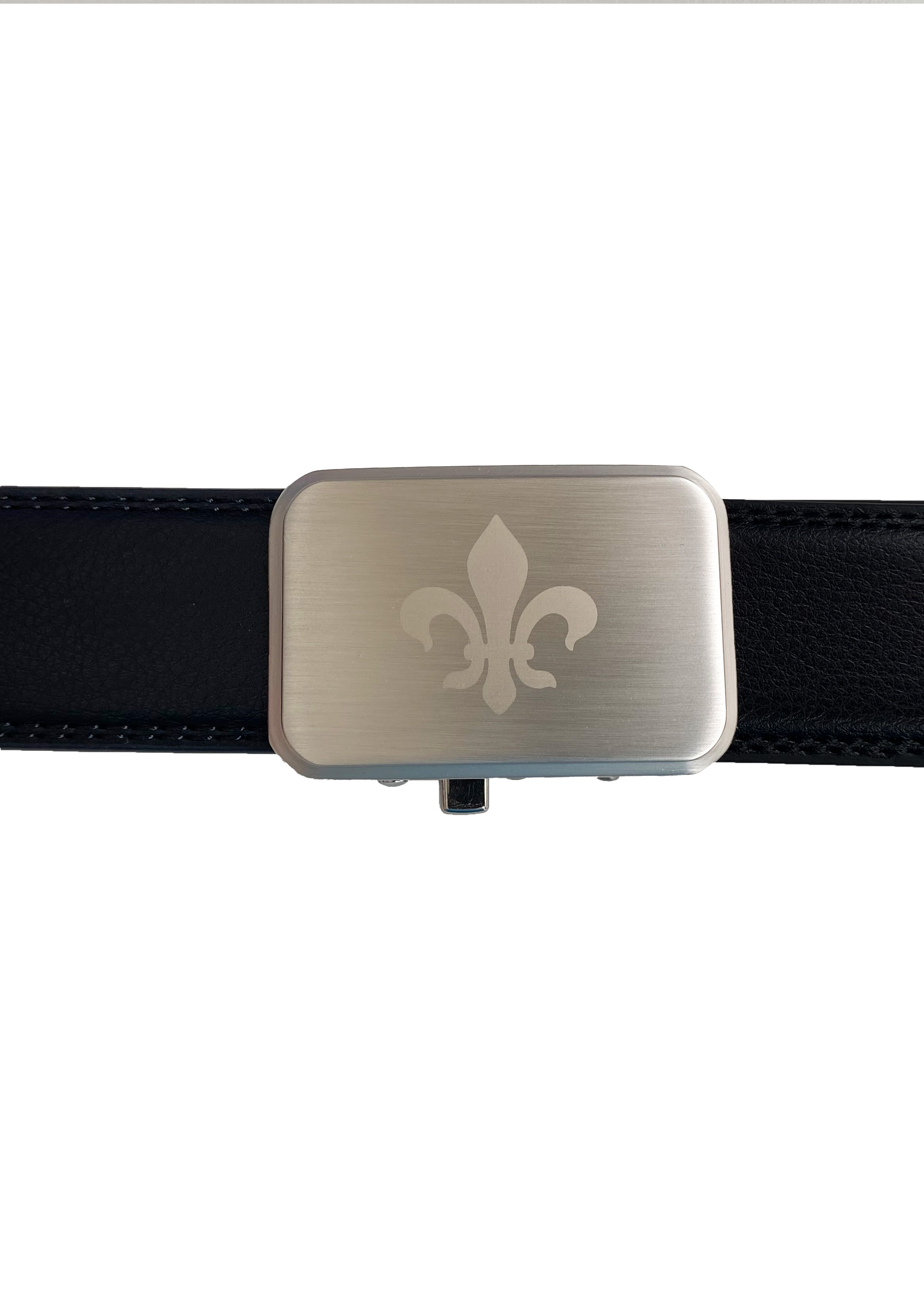 Unser SV 98 Gürtel kommt ganz ohne Löcher aus – für maximalen Komfort und eine moderne Optik. Statt der herkömmlichen Lochung ist in die Schnalle ein präziser Miniatur-Ratschen-Mechanismus integriert. Dieser lässt sich ganz einfach per Schiebegriff öffnen und schließen und ermöglicht eine stufenlose Anpassung an jede Körperform. Die Schnalle, auf die eine Lilie graviert ist, besteht vollständig aus Edelstahl, der Gürtel besteht aus Kunstleder (Polyurethan).