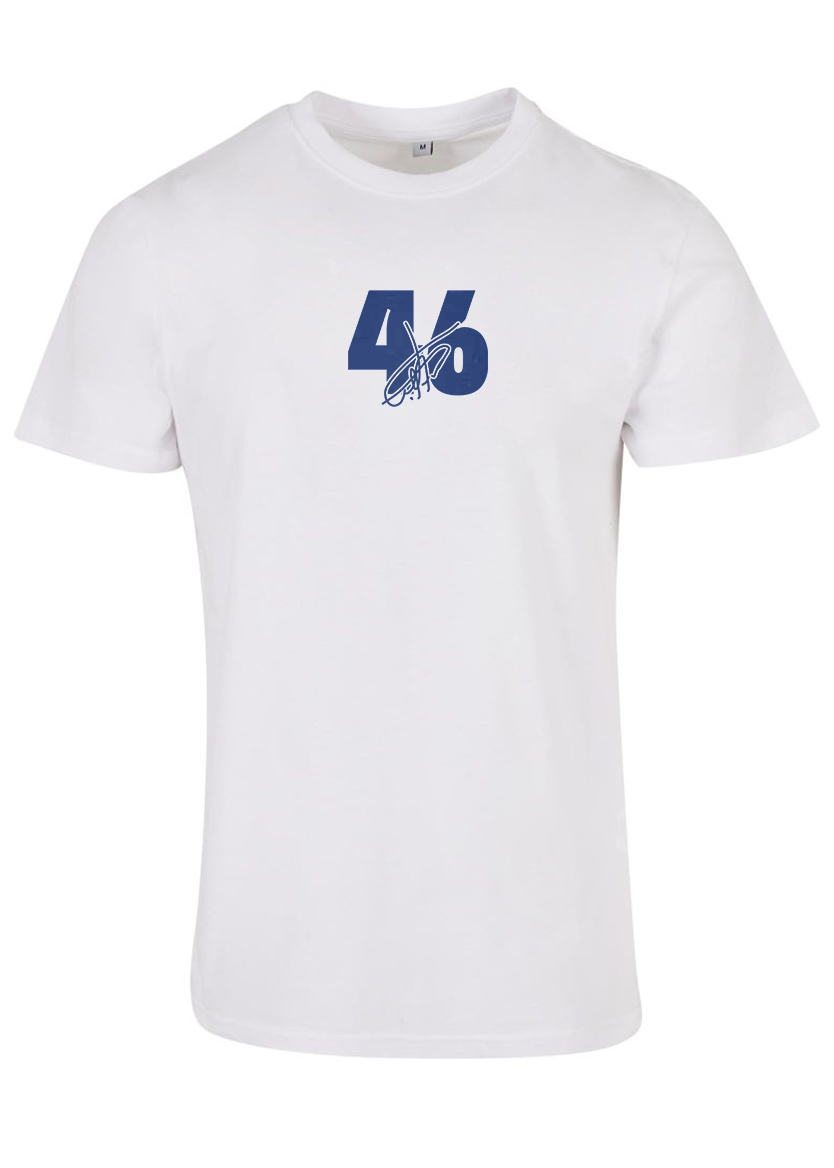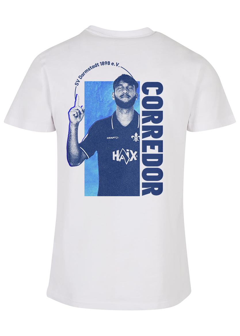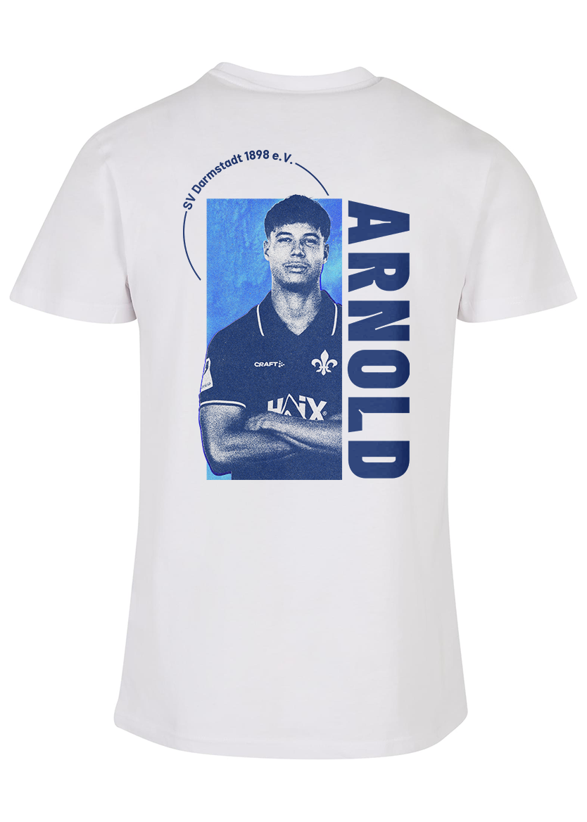 Das moderne Design vereint sportlichen Look und klare Linien: Auf der Vorderseite findest du die Rückennummer und Unterschrift des Spielers, auf der Rückseite den großflächigen Spielerprint in den Vereinsfarben Blau und Weiß. Der dezente Schriftzug „SV Darmstadt 1898 e. V.“ rundet das Shirt gekonnt ab.