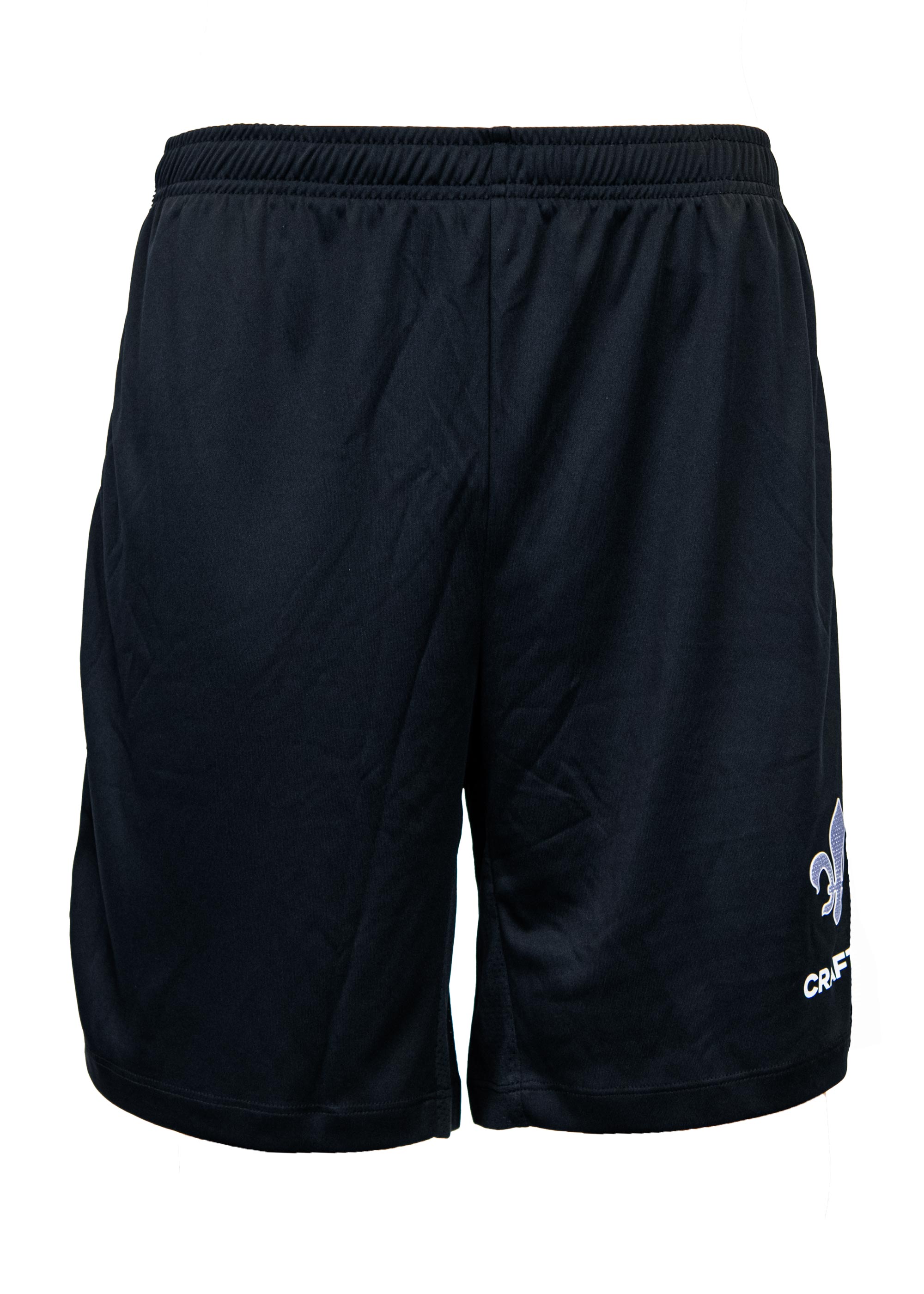 Schwarze Torwartshorts, auf der sich seitlich ein schmales weißes Streifenmuster befindet.